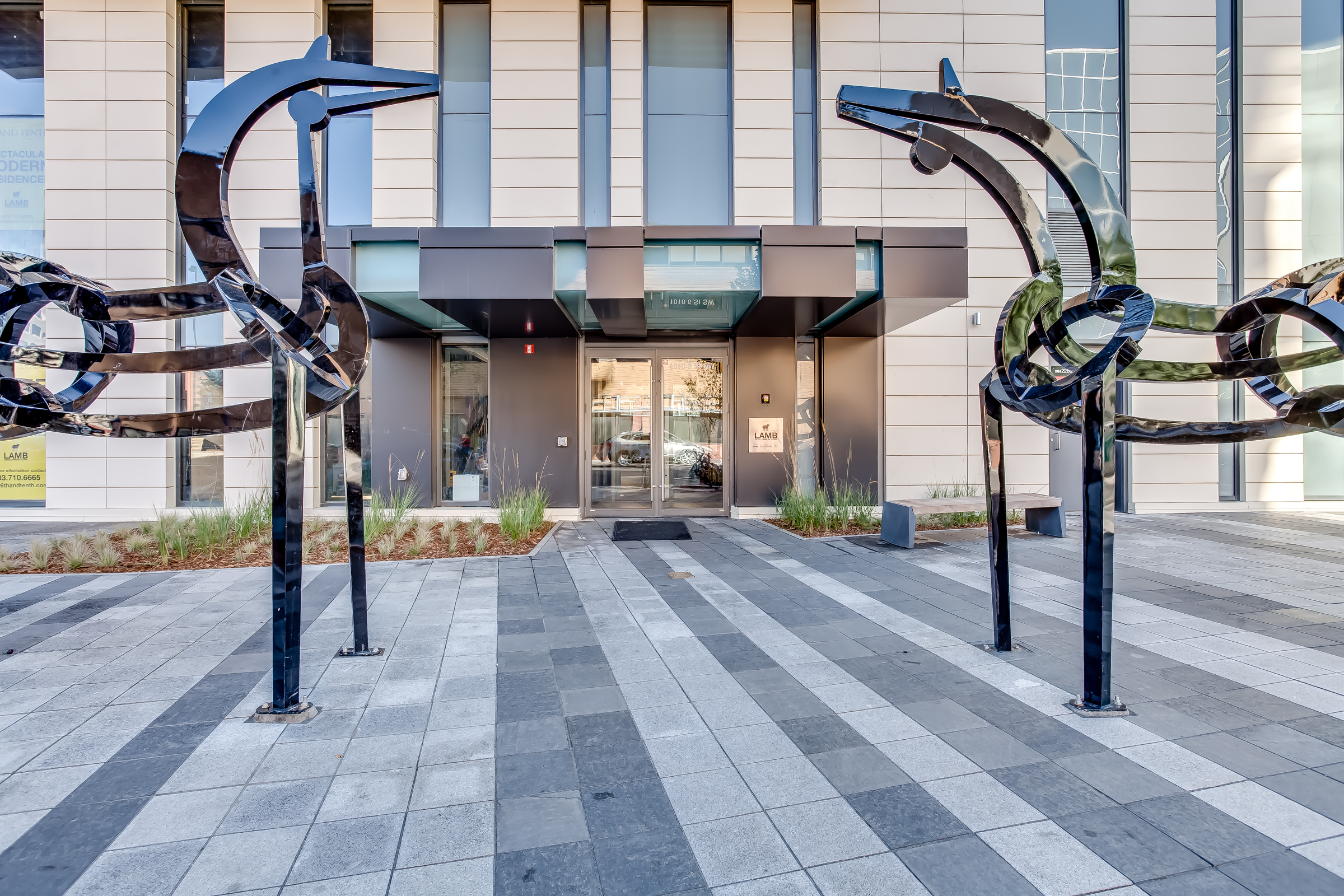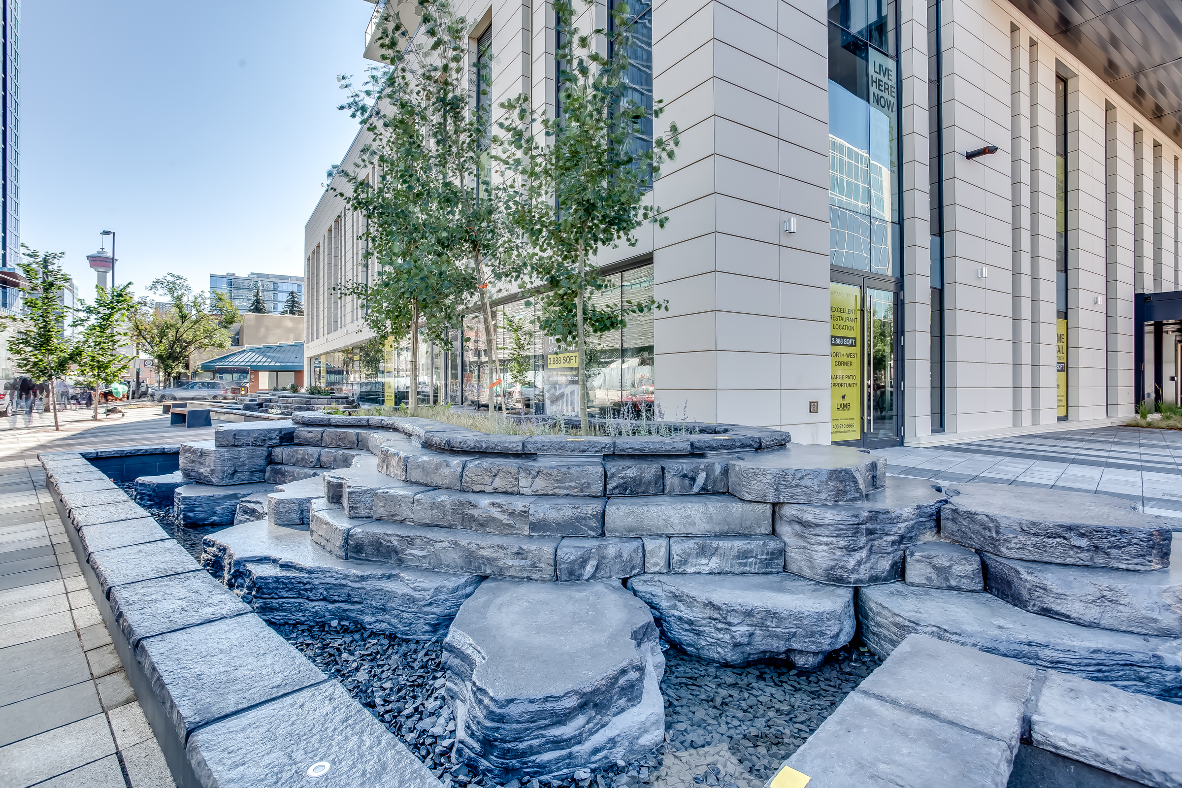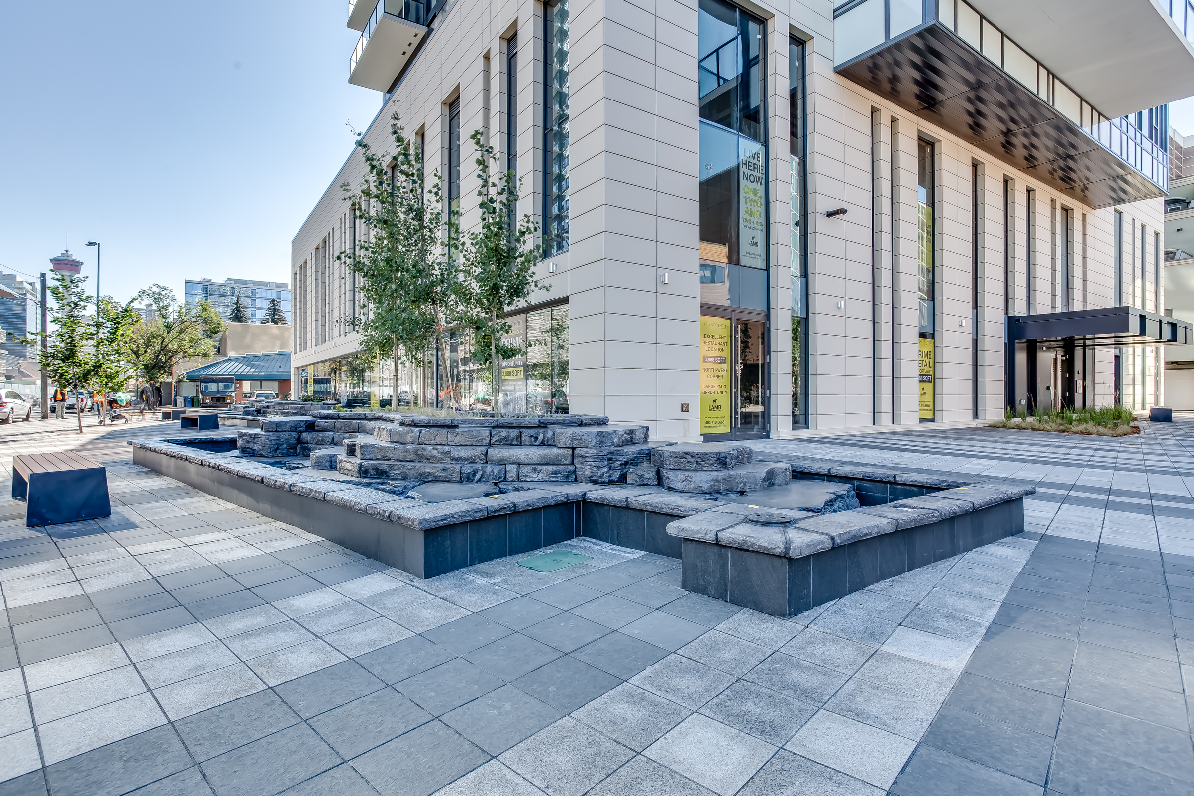6th and Tenth is so named for the intersection that it will sit on. Rising 31 floors, this point tower has spectacular views from all around, mountains, sunsets, skylines. Black brick, odd-sized balconies, and windows create a playful tower. At the base is a small podium, reminiscent of great public buildings of the 60’s. Surrounding the podium is a water art park, complete with green space water features, stone blocks, and an art sculpture garden. Step inside to a 5-star restaurant.