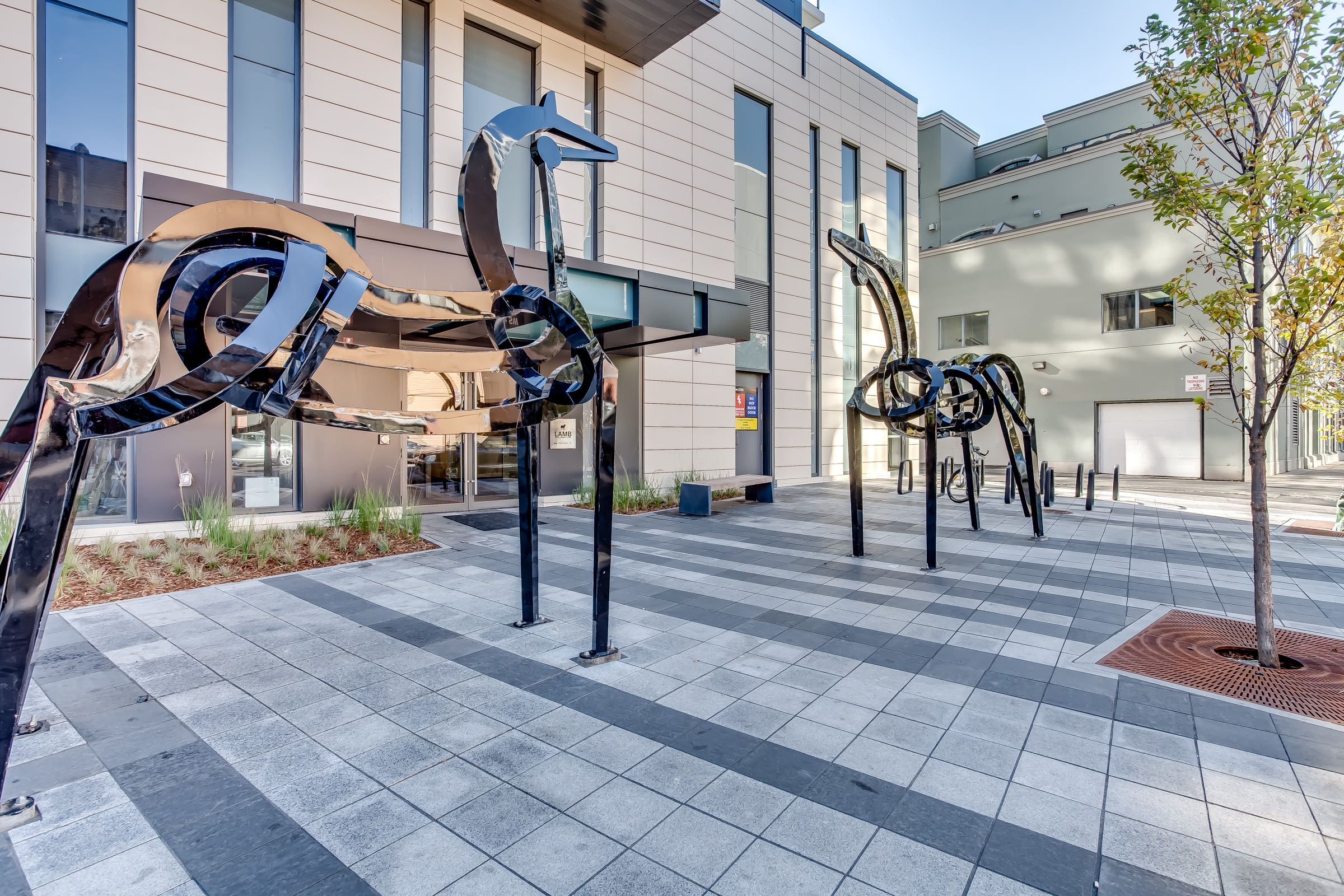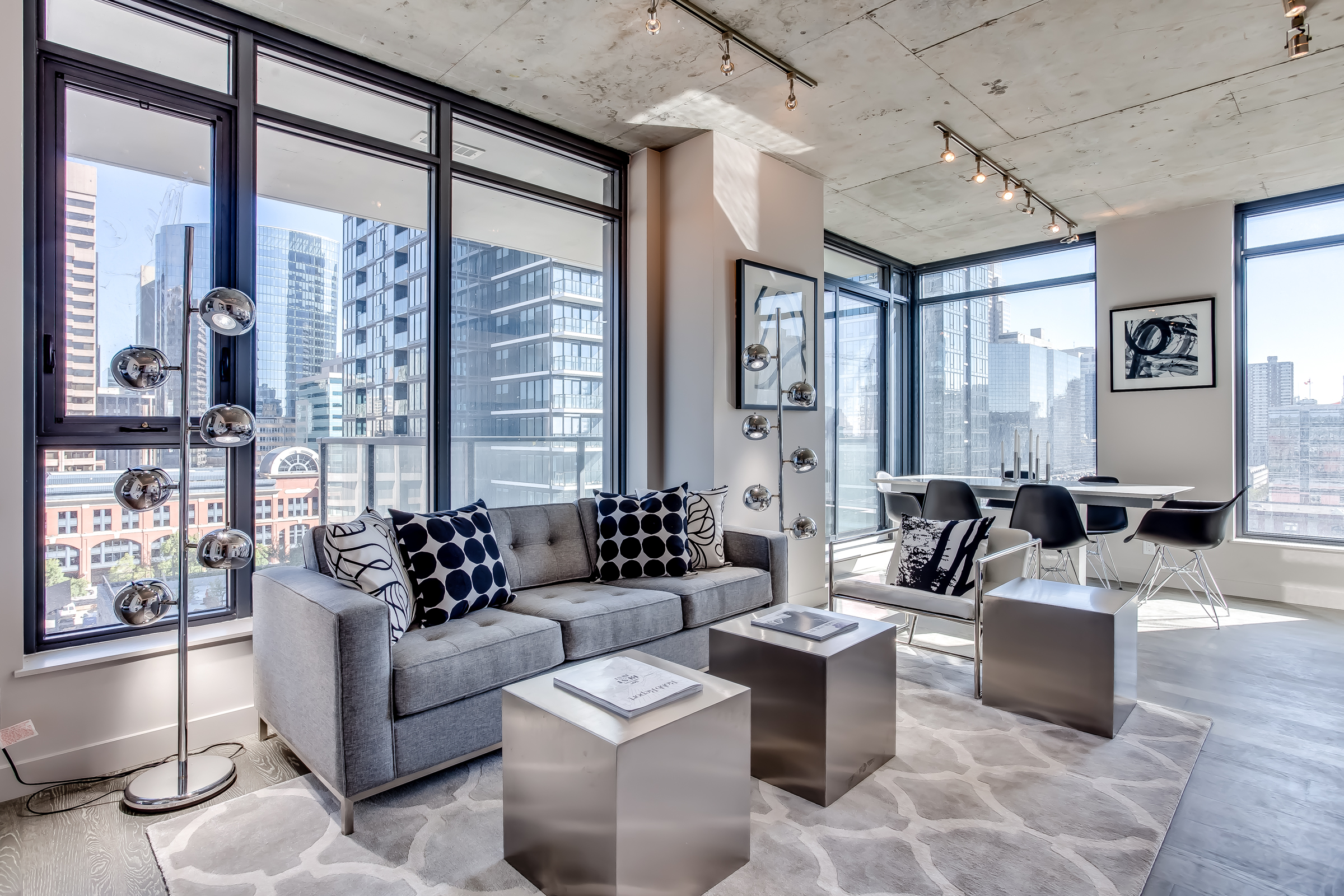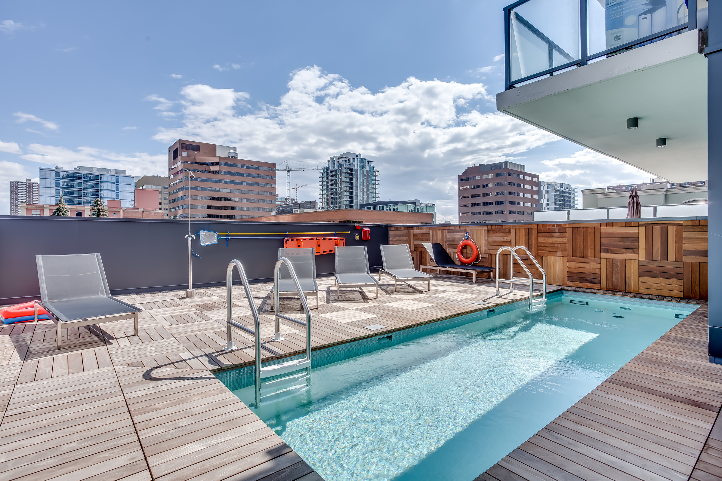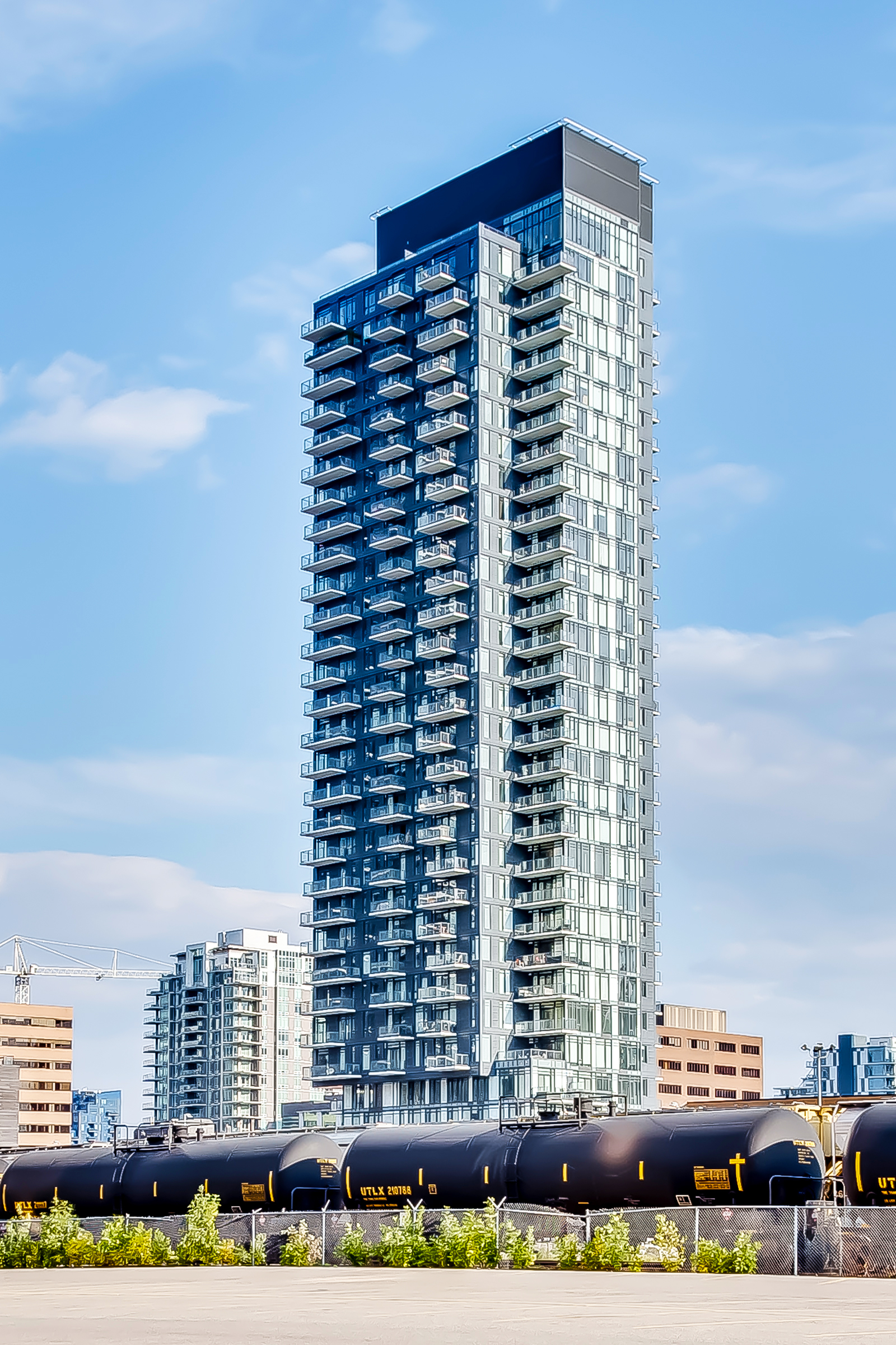 6th and Tenth is so named for the intersection that it will sit on. Rising 31 floors, this point tower has spectacular views from all around, mountains, sunsets, skylines. Black brick, odd-sized balconies, and windows create a playful tower. At the base is a small podium, reminiscent of great public buildings of the 60’s. Surrounding the podium is a water art park, complete with green space water features, stone blocks, and an art sculpture garden. Step inside to a 5-star restaurant.