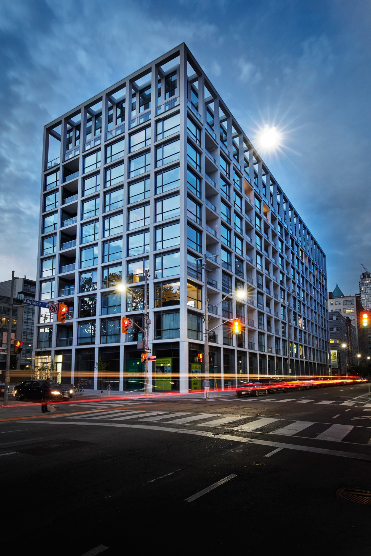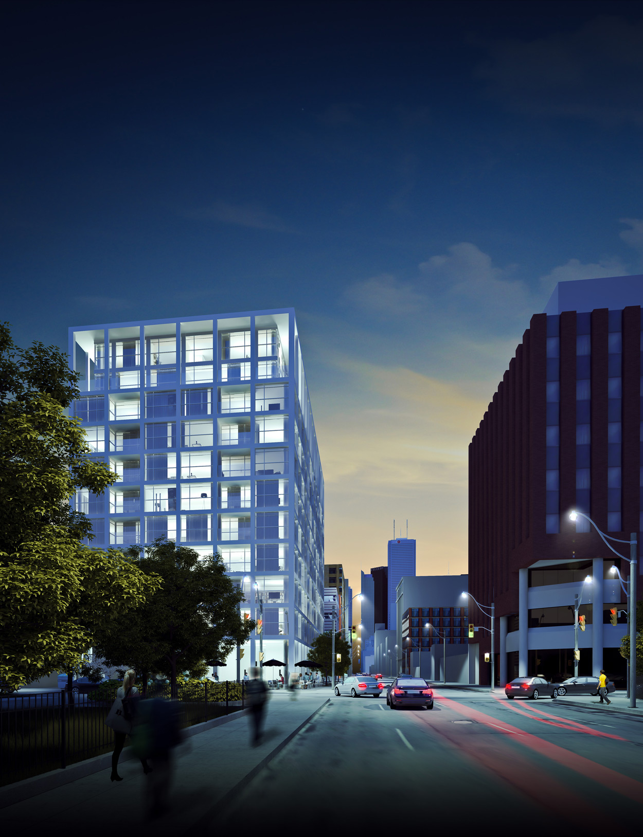 The Brant Park has been designed in favour of the 50’s International style. Its crisp, clean lines betray an essence of orderly, a place where beautiful monotony can exist. Rising 11 storeys over St. Andrew’s Park, the building houses 240 residences and 15,000SF of ground floor retail.