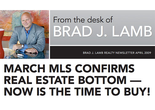 March MLS 2009 Confirms Real Estate Bottom TweetPinShare0 Shares From the desk of Brad J. Lamb March MLS confirms real estate bottom – now is the time to buy! View PDF